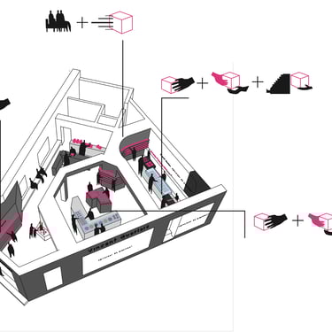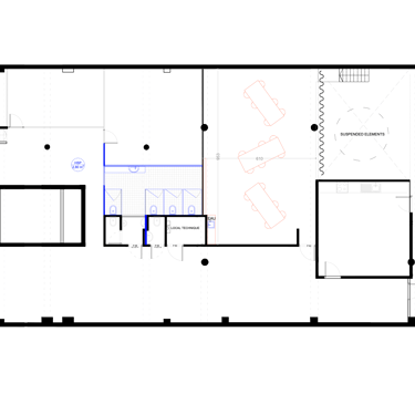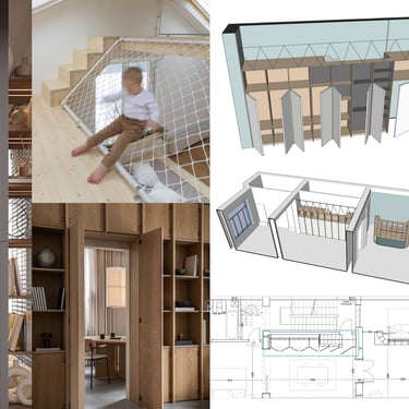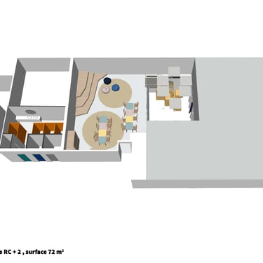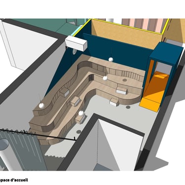 Projet d’aménagement et rénovation d’intérieur d’un espace ludique pour enfants, pour l’association Studio Globo : réalisation des plans, estimatif budgétaire, modélisation 3D et conception de mobilier sur mesure.