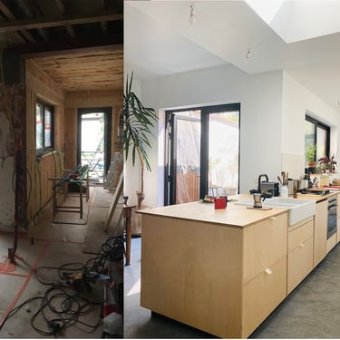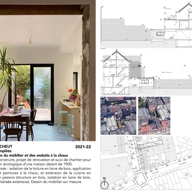 Permis de construire, projet de rénovation, mobilier sur mesure (dont cuisine) et suivi de chantier pour la rénovation écologique d’une maison datant de 1900.