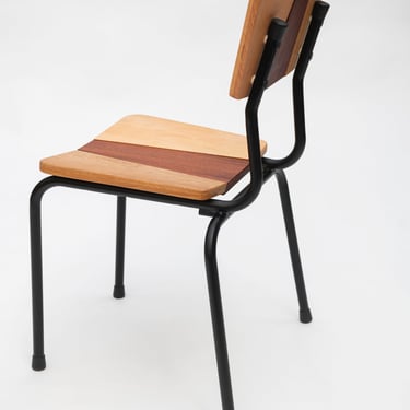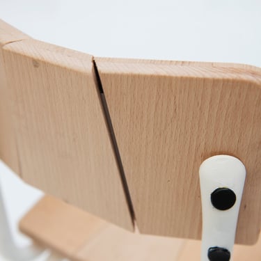 Conception, prototypage et suivi de production d’une chaise entièrement issue de matériaux recyclés : bois provenant de planches de parquet, bâches publicitaires recyclées pour apporter de la souplesse, et structure récupérée sur d’anciennes chaises d’écolier en bois. Le projet a été initialement financé par MAD Brussels pour sensibiliser et valoriser le «déchet- matériau» bois. Projet réalisé en collaboration avec les Ateliers Groot Eiland pour la production.
